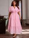Simplee Women's Spring/Autumn New Solid Color Hollow Lace Patchwork Button Decor Long Dress, Elegant Formal Gown, Wedding Guest Dress, Vintage Style, Birthday Dress, Graduation Dress