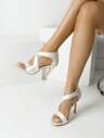 Timesize Rhinestone Women's Champagne Color Sandals, Thick Heel Formal Work Office Wedding Party Dress Shoes, Super High Heel Slides, New Random Pattern