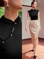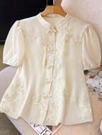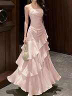 GMFP Women's Casual Elegant Loose Fashion Solid Color New Year/Christmas Long Sleeve Layered Ruffle Trim Party Blouse