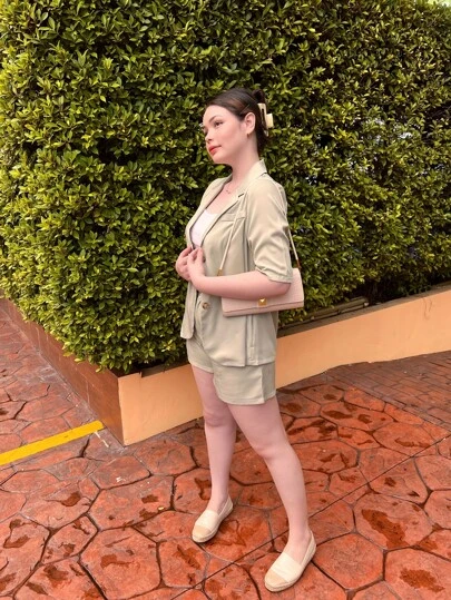 DAZY เสื้อเบลาส์คอปกติดกระดุงหน้าพร้อมกางเกงขาสั้นใส่ไม่ต้องใส่เสื้อด้านใน ฤดูร้อน, ชุดทูชิ้นสำหรับสตรี - สีเขียวมิ้นท์ - ดู 8
