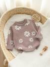 SHEIN Playful Pals เสื้อผ้าเด็กผู้หญิงเป็นแบบลำลองและน่ารัก เป็นเสื้อสเวตเตอร์ถักคอสูงสีเหลืองแขนยาวสไตล์ตะวันออกกลางลายดอกไม้ นุ่มสบาย เหมาะสำหรับฉากในชีวิตประจำวัน, ฉากกลางแจ้ง, ฉากการเดินทาง, ฉากพักผ่อน, ฉากบ้าน, ฉากสถานรับเลี้ยงเด็ก และเด็กเล่น เหมาะสำหรับฤดูใบไม้ร่วงและฤดูหนาว, คริสต์มาส, เปิดเทอม และงานปาร์ตี้ เป็นเสื้อผ้าฤดูใบไม้ร่วงและฤดูหนาวอเนกประสงค์สำหรับ