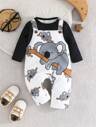 2ชิ้น ชุดเสื้อผ้าเด็กชายแรกเกิด - เสื้อปักลายหมีคอปกแถบและชุดกางเกงลำลอง