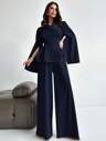 Firerie ชุดเสื้อเบลาส์แขนยาวผ้าซาตินสีฟ้าจับจีบคอปกและกระโปรงยาวจับจีบเอวสูงสำหรับผู้หญิง, โรแมนติก, เดท, ปาร์ตี้, ฤดูแต่งงาน, ชุดรับปริญญา, งานบอลทางการ