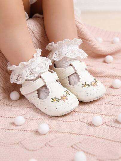 Infant Infant Girls Soft Sole Bowknot Princess Wedding Dress Mary Jane Flats Prewalker Newborn Light Infant Sneaker Shoes - White - View 1
