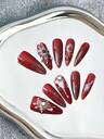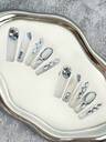 เล็บเท้าปลอมทรงสี่เหลี่ยมทำด้วยมือสีเงิน ตกแต่งด้วยพลอยหลังแบนแวววาวหลากรูปทรง สำหรับผู้หญิง เล็บเท้าปลอมแบบทำมือแบบครอบคลุมทั้งหมด 10 ชิ้น