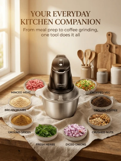 SOKANY 7020 Electric Meat Grinder, Can Chop Vegetables, Crush Garlic, Make Garlic Paste, 2L Large Capacity, 400W High Power Fast Mixing, 304 Stainless Steel Blade, Suitable For Vegetables, Onions, Garlic, Fruits, Nuts, Salads And Dough Mixing, Suitable For Home Use, Kitchen Appliance - EU C Type Plug(220-240V) - View 11