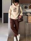 Explorewe Teenager (Boys) English Embossed Crew Neck Pullover Sweatshirt Set, Light Khaki Casual Sweatshirt