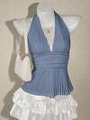 Elamini เสื้อสายเดี่ยวแฟชั่นเซ็กซี่ลายทาง จับจีบเอวระบาย สำหรับผู้หญิง
