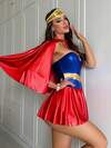 3 ชิ้น/ชุด ชุดเดรสหนังเทียมดีพวี ซุปเปอร์ฮีโร่ + หมวก + เคป, ชุดแฟนซีผู้หญิงแบบบางเรียว