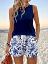 EMERY ROSE 2ชิ้น/ชุด เสื้อกั๊กคอกลมและกางเกงขาสั้นลำลองสำหรับผู้หญิง เหมาะสำหรับฤดูร้อน