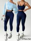 Dewbera 3 Parçalı Spor Atletik Seti - Dikişsiz Sütyen, Tayt, Uzun Kollu Üst Kadın Egzersiz Seti 3 Parça Kadın Zayıflama Seti Lacivert Egzersiz Seti Uyumlu Egzersiz Seti Aktif Giyim Spor Salonu Seti Kavisli Aktif Giyim Seti Egzersiz Seti
