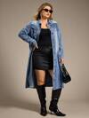 SHEIN SXY Büyük Beden Kadın Tek Sıralı Rahat Kot Ceket, Kadınlar İçin Uzun Kollu Yazlık Kıyafetler Festival Kıyafetleri İş Gündelik Kadın Şık