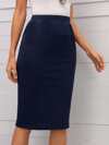 Şık, Düz Renk, Yüksek Bel, Dar Kesim Kalem Etek, Siyah, İlkbahar