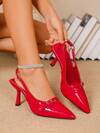 CHICVUE Kadın Sonbahar/Kış Sivri Burunlu Yüksek Topuklu Ayakkabılar, Metal Tokalı Dekor ve Bilek Kayışlı Deri Benzeri Malzeme, Ofis Yolculuğu ve Sosyal Etkinlikler İçin Şık ve Seksi Noel Hediyeleri