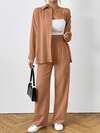 SHEIN PETITE Kadınlar için Düz Renk Minimalist Uzun Kollu Üst ve Pantolon 2 Parça Takım, Günlük Rahat Giyim