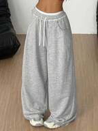 VIBEWAVE Heather Gray Vintage Amerikan Tarzı Yuvarlak Yaka Kazak, Sonbahar/Kış İçin Rahat Örgü Kazak