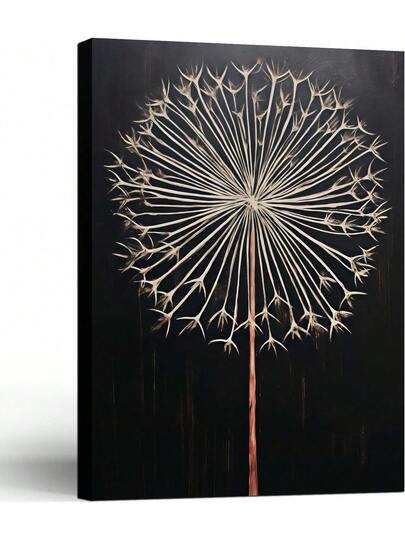 1 Pc Canvas Painting, Dandelion Plant , Wooden Framed Art,High Quality ,Thickness 2. 25cm/1inch Wall Art Prints Poster Direct Hanging Decor For Home Gifts,Living Room, Bathroom, Bedroom, Kitchen,Bar,Office,Halloween, Christmas And Valentine's Day Gifts,2D Plane - Black - View 1