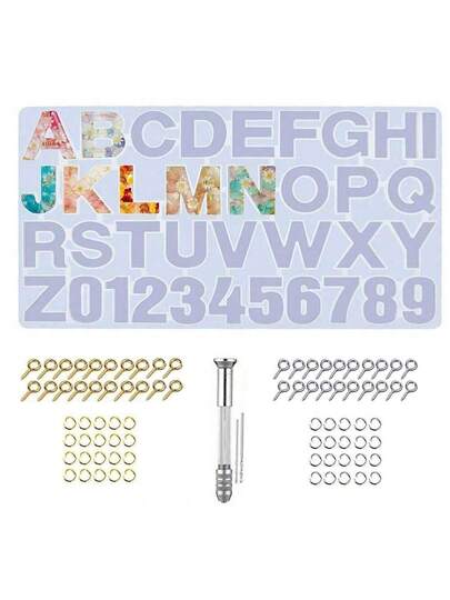 104 Pcs Alphabet Silicone Resin Molds, Letter & Number Epoxy Resin Molds Keychain Jewelry Making Includes Key Rings And Pliers, For Resin Casting To Make Keychains/House Numbers - 104 Pieces - View 1