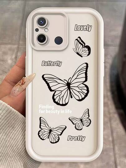 1pc Gradient Frame Dopamine Art Black Line Lovely Butterfly Pattern Phone Case, Soft Protective Cover, Suitable For Honor X7/Galaxy A56 5G/Infinix Smart 8/Infinix Hot 40/Transsion Spark 30C/Spark Go 2024/Redmi Note 14 5G/ Moto E22/E22i/OPPO A54 - White - View 1