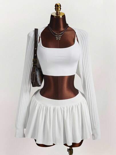 Amplova 1pc Shrug Lightweight Sheer Cardigan,Long Sleeve Tops - White - View 9