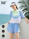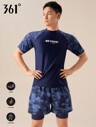 361degree 361 Professional Competition Sports Swimming Suit For Men, 2pcs Set: 1pc Long Sleeve Shirt, 1pc Knee-Length Shorts With Drawstring Waist, Designed For Quick-Dry, Stretchable, Breathable, Swimming, Surfing, Beach Volleyball, Outdoor Sports, Hot Spring, Water Sports, River Trekking, Beach Holiday, Adult & Teens