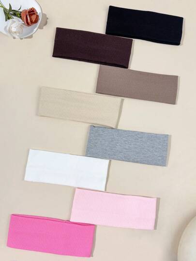 8pcs/Set Solid Color Breathable Moisture-Wicking Sports Headbands, Suitable For Gym, Workouts, Running, And Daily Wear - Multicolor - View 8