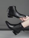 Fall/Winter Women Pointed Toe Bow Decor Short Boots, Metal Electroplating Shiny Thick Heel Black Metal Zipper Short Ankle Boots,Boots For Women