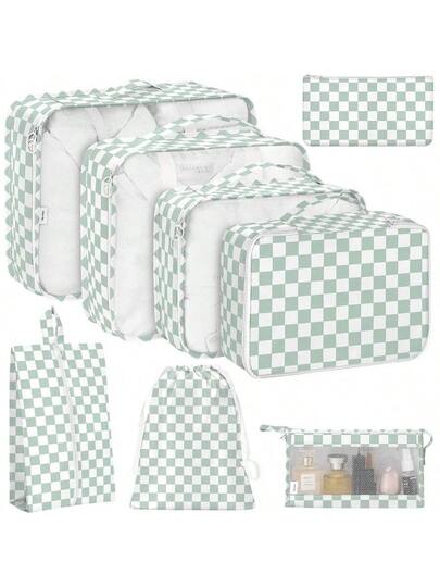 FL 8 Set Packing Cubes For Travel Luggage Packing Organizers Accessories Large Toiletries Bag For Clothes Shoes Cosmetics 8SetGreen Checkered - 8SetGreenCheckered - View 1