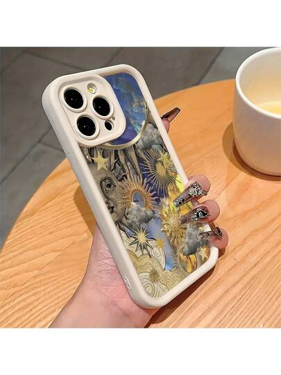 Fashionable Phone Case Gilded Sun God, Baroque Sun And Stars, Vintage Astronomy, Artistic Constellation, Frosted Full-Wrap TPU Fashion Phone Case, Comfortable Grip, Effectively Protects Your Phone From Bumps And Drops. Suitable For Various  Models, Including - Style 1 (1 Piece) - View 1