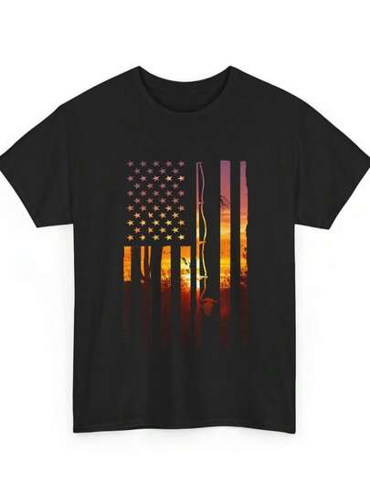 Fishing Shirt, Fishing American Flag Sunset Fishing Season Lover Fisherman Shirt - Black - View 1