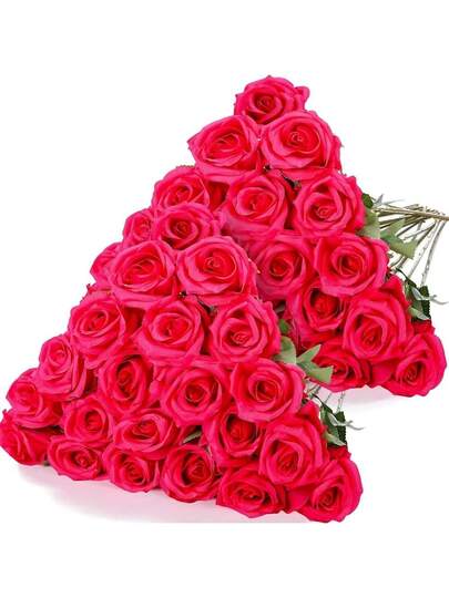 Hotop 40 Pcs Rose Artificial Flowers Bulk With Long Stem,Realistic Silk Fake Roses Bouquet For Home Wedding Centerpieces Party Table Decoration Valentines Gifts(Hot Pink),One-Size,HotPink - Hot Pink - View 5