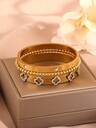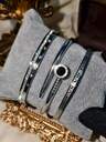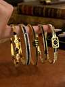 4pcs 18K Gold Plated Stainless Steel Four-Leaf Clover Nail Bangle & Ring Set, Fashionable & Elegant Women Jewelry Bracelet & Ring Combo, Waterproof & Fade-Resistant, Suitable For Daily Wear & Gift