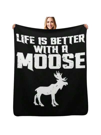 Life Is Better With A Moose Throw Blanket Furry Tourist Cosplay Anime Warm Blanket - Black - View 1