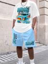 Manfinity ZONE917 Men's Letter & Pentagram Print Loose Short Sleeve T-Shirt And Pants Set Camo 2 Piece Set Men