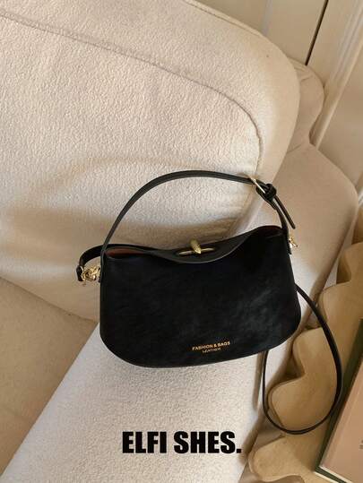 PU Material Women's Small Handbag, Fashionable Flap One Shoulder Crossbody Bag, Twist Lock Closure, Suitable For Girls, Ladies, College Students, Young Professionals, And Office Workers, Great For Work, Business, Commuting, And School - Black - View 1