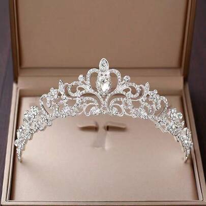 Shiny Hollow Crystal Crown Headband, Silver Rhinestone Tiara, Suitable For Women's Formal Occasions - Multicolor - View 1