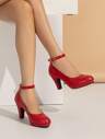 Wide Fit Women's Solid Color Thick Platform Strap Buckle High Heels, Elegant Party Formal Wedding Pumps, Comfortable Waterproof Platform Shoes, Fashionable Versatile Work Ankle Strap High Heels For All Seasons