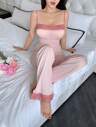 SweetSlumber Women's Sweet & Cute Gingerbread, Cream, Candy, Snowflake Print Satin Collar Pajama Set Gingerbread Pajamas Pink Pajama Sets For Women Satin, Fall Winter Clothes, For Christmas