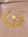 1pc Versatile 24K Gold Plated Coin Bracelet & Ring Set, Jewelry Gift Suitable For Women's Daily And Holiday Wear