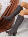 FVPFVP Fall/Winter 2024 New Versatile Knee-High Boots, Chunky Heel, Stretch Slim Fit Tall Riding Boots For Women