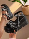 CUCCOO BIZCHIC Women's Fashion Black Ankle Strap Classic Comfortable Peep Toe Wedge Heels, Suitable For Commuting, Dating, Party, Vacation For Christmas