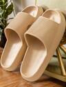 Fall/Winter Thick Sole Striped Slip-On Slippers, Solid Color Round Toe Casual Minimalist Indoor Outdoor Non-Slip Odor-Resistant EVA Sandals [Suggest Ordering One Size Up For More Comfort]