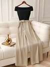 NEWFranclia Women's Casual And Elegant Black Off-The-Shoulder Sleeveless Backless Slim-Fit Top+Khaki Loose Pants With Free Belt,Suitable For Daily Wear/Business Attire/Commute Outfit/Relaxing Vacation/Dinner/Valentine's Day