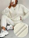 Relaxed Texture Pullover Pants, Long-Sleeved Round-Neck Sportswear And Jogging Pants Combination, Women's Clothing, High-Quality Textured Casual Pullover Set, Releasing A Sense Of Relaxation And Ease