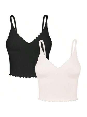Tank Top For Women, V Neck Seamless Ribbed Crop Camisole With Ruffles