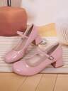 Shiny Patent Leather Thick Heel Round Toe Mary Jane Pumps For Women, Autumn/Winter Vacation Style Ankle Strap Metal Buckle Pointed Toe High Heel Pumps, Commute & Outdoor Fashion High Heel Shoes, Promotion