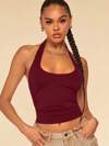 SHEIN EZwear Solid Color Halter Neck Backless V-Neck Tank Top, Casual Daily Wear