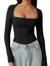 Huskary Square Neck Long Sleeve T Shirt For Women Slim Fit Winter Thermal Casual Fashion Tops