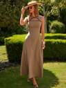 COSMINA 1pc Women Solid Color Crew Neck Single Button Sleeveless Casual Mini Dress,Summer Dresses For Women