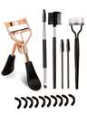14pcs Eyelash Tools Set, Includes Eyelash Curler, Eyebrow Razor, Tweezers, Eyebrow Brush And 10pcs Glue Strips, Suitable For Women Eye Lash Care, Eyelash Curler, Suitable For Daily Use